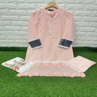 Designer Luxury Tunic with beautiful classy Embroidery With pearl diamond Work and with ribit and fancy botton & Classy Slive paired with Shaded Dupatta & Reyon Plazoo With Beautiful Embroidrey Work