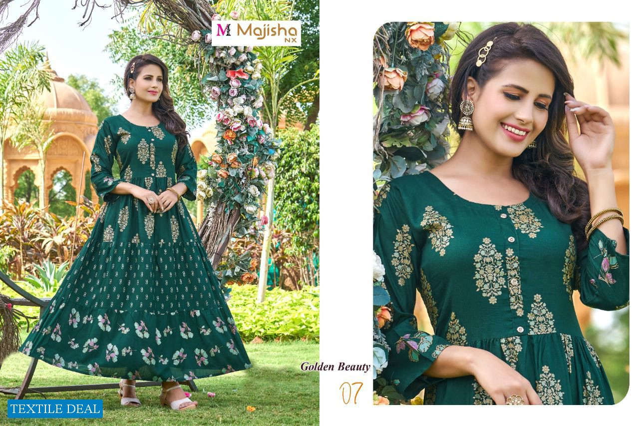 Product Code MAJISHA NX GOLDEN BEAUTY RAYON FOIL PRINTED LONG GOWN SUPPLIER