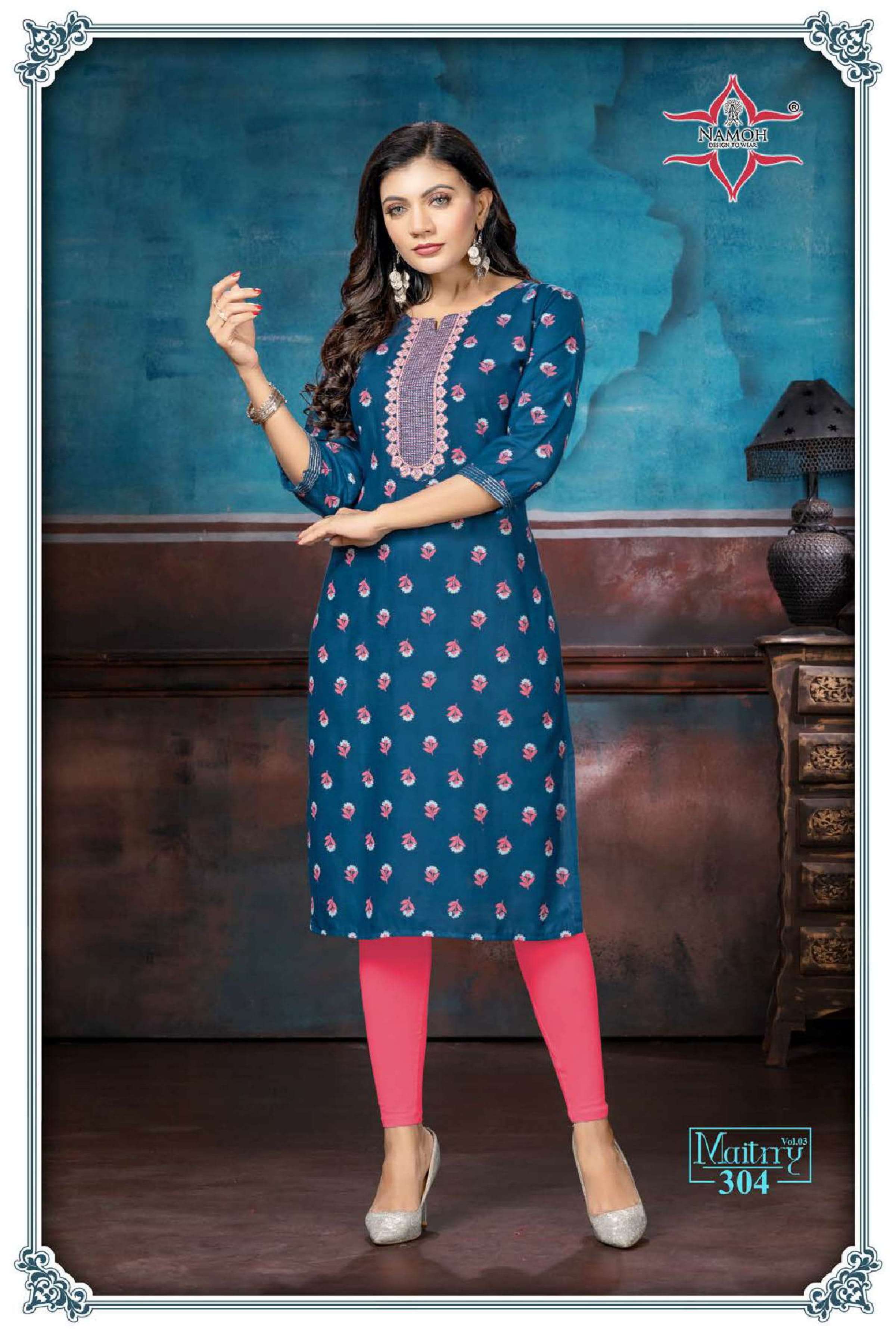 NAMOH MAITRRY VOL 3 RAYON PRINT SIMPLE READYMADE KURTI DESIGN
