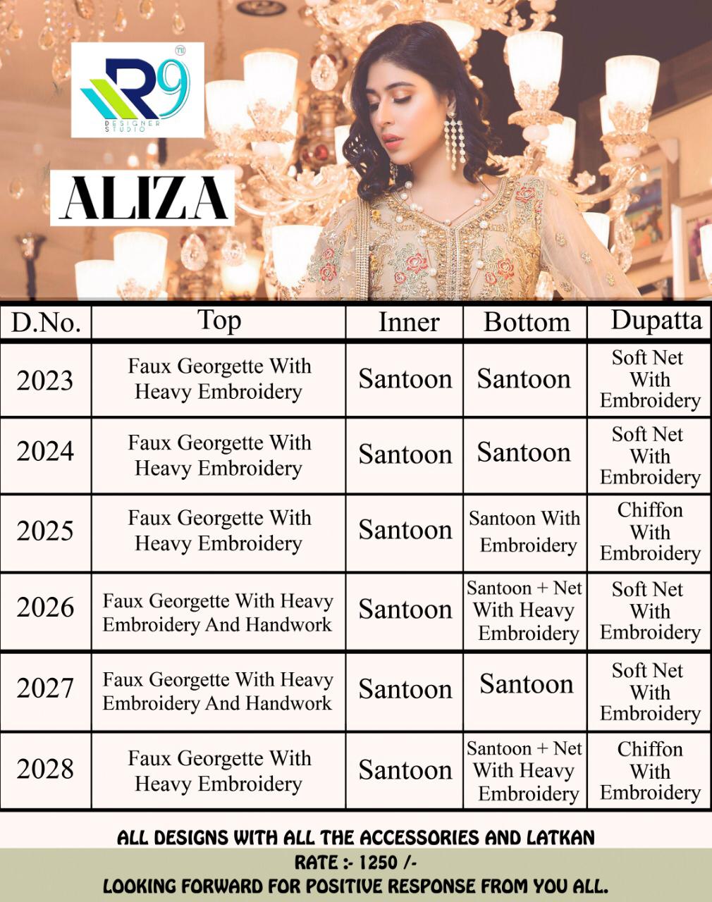 R9 PRESENT ALIZA FAUX GEORGETTE PAKISTANI STYLE SUIT COLLECTION