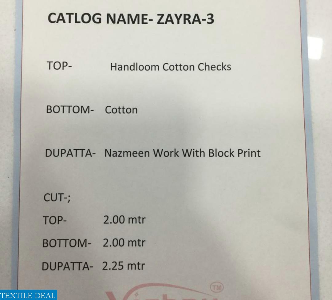 VISHNU ZAYRA VOL 3 HANDLOOM COTTON CHECKS SUIT DEALER