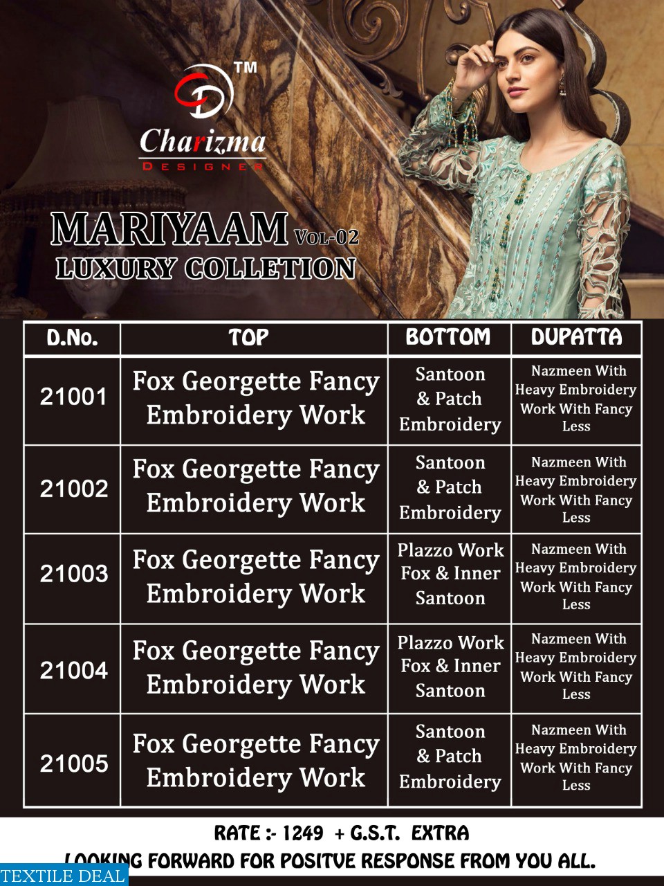 CHARIZMA DESIGNER MARIYAAM GEORGETTE WITH FANCY WORK PAKISTANI SUIT CONCEPT