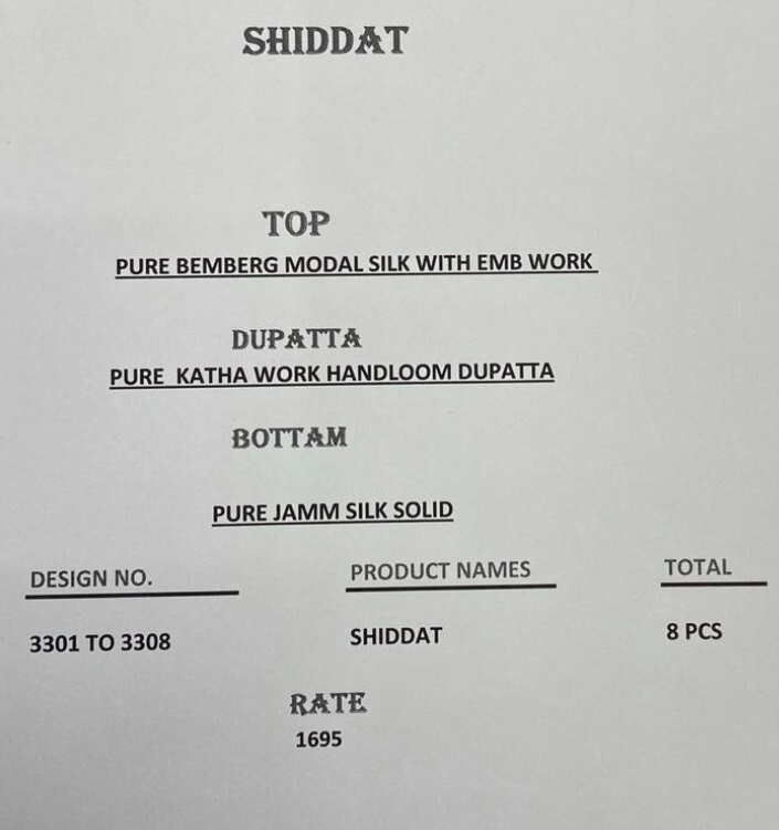 PRM Trends Shiddat Wholesale branded Salwar Suits