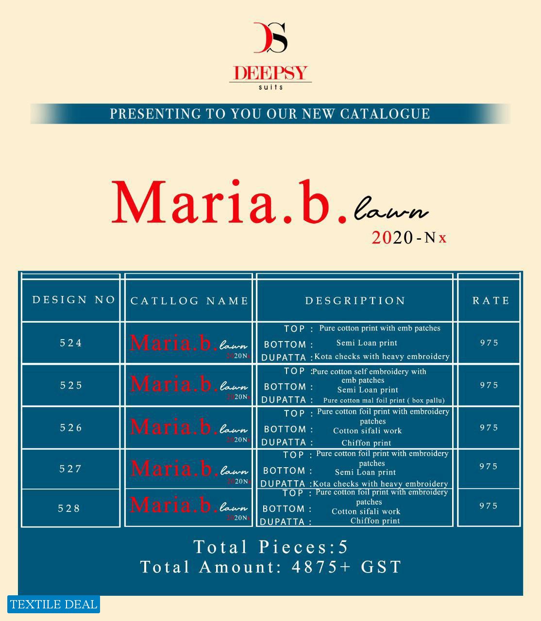 Deepsy Maria b 2020 Nx Wholesale Pakistani Concept Dress Material
