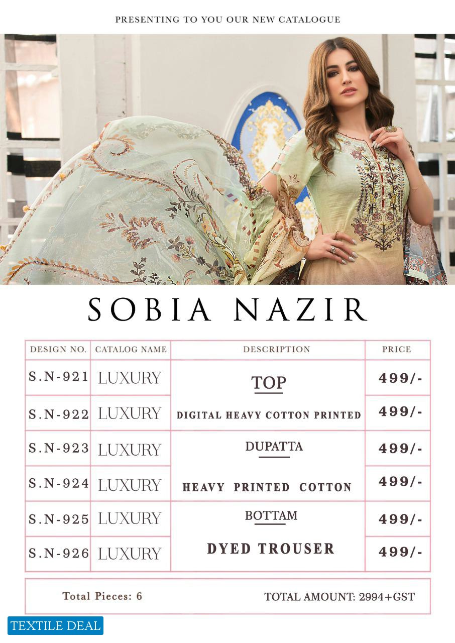 SOBIA NAZIR LUXURY ORIGINAL LAWN COTTON PRINTED PAKISTANI SUITS WHOLESALER
