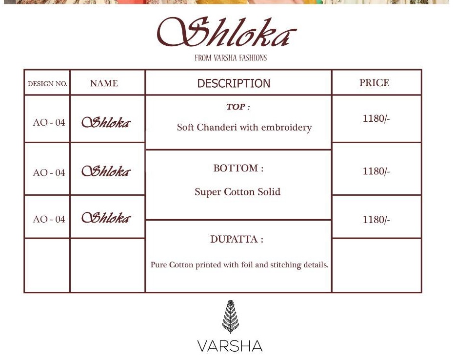 VARSHA FASHION SHLOKA SOFT CHANDERI EMBROIDERY SALWAR SUIT WITH COTTON DUPATTA