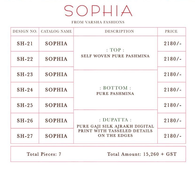 SOPHIA BY VARSHA FASHIONS SELF WOVEN PASHMINA BRANDED LADIES SUIT WHOLESALER
