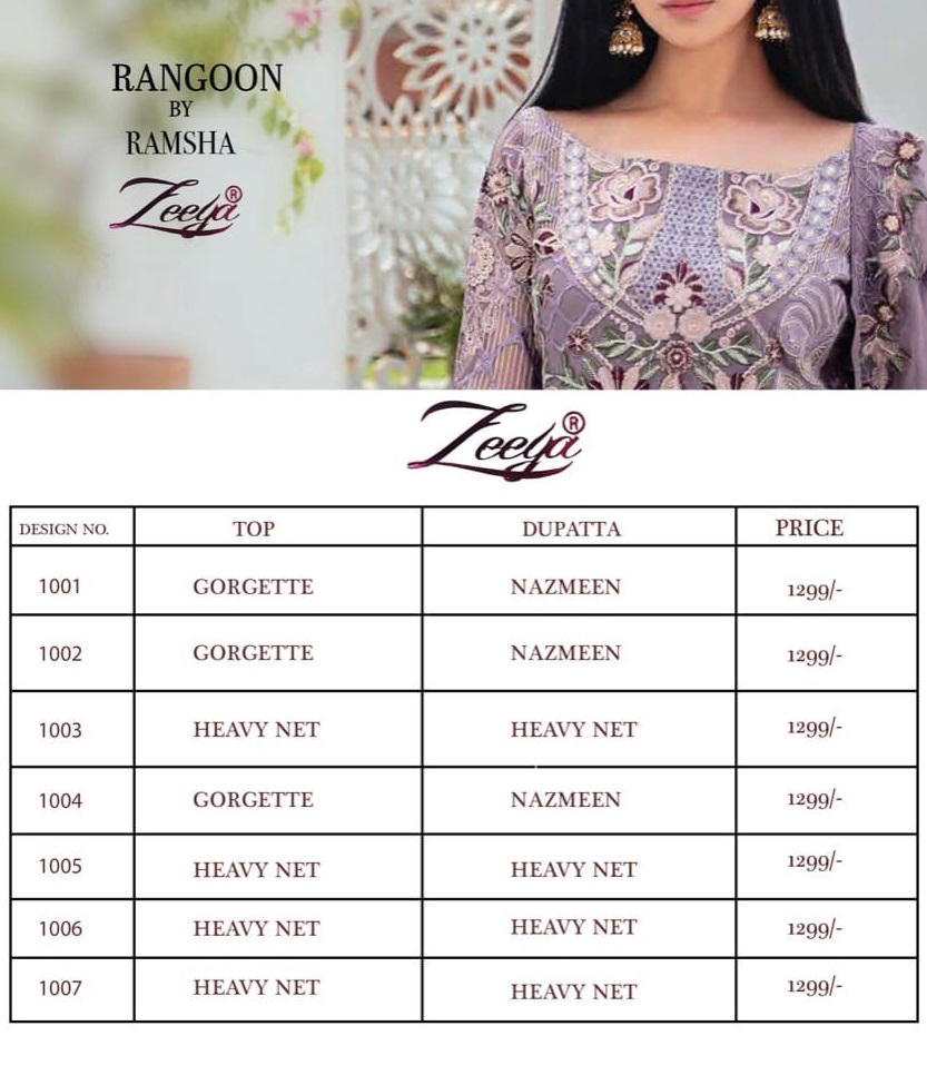 Ramsha Rangoon Zeeya Wholesale Pakistani Salwar Kameez