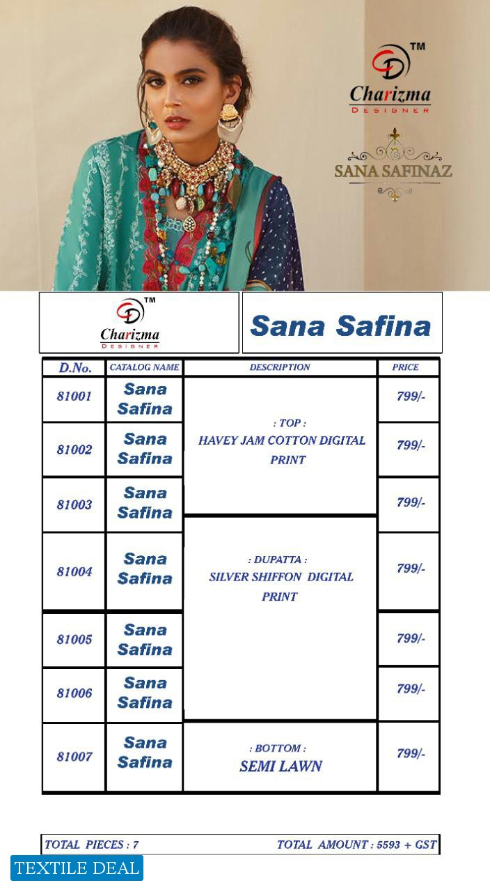CHARIZMA DESIGNER SANA SAFINA JAM COTTON SUPER PAKISTANI SUIT DESIGN IN SURAT MARKET