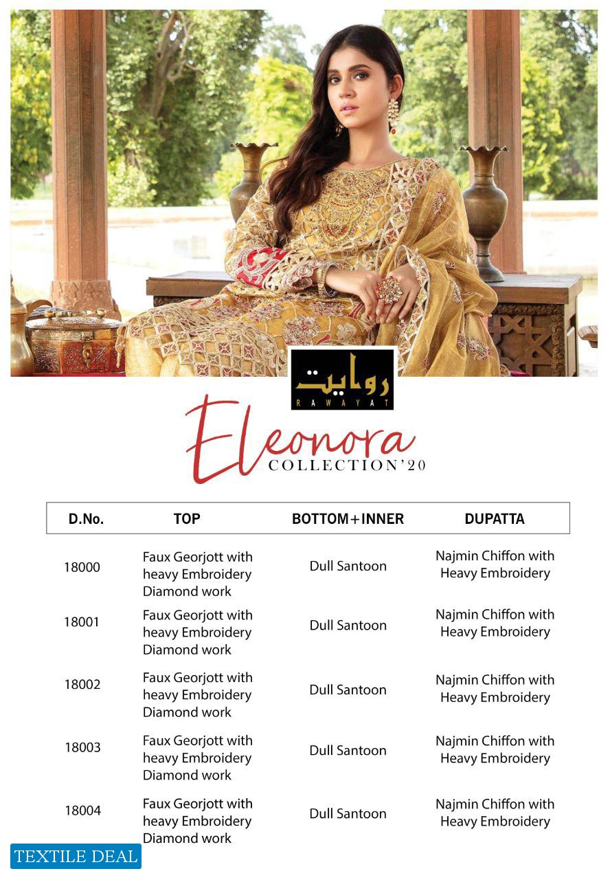 ELEONORA CHIFFON 2020 BY RAWAYAT HEAVY GEORGETTE WITH EMBROIDERY PAKISTANI SUITA CONCEPT