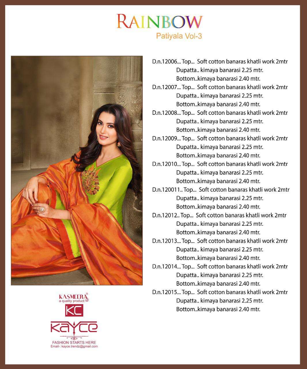 Kasmeera Rainbow Patiyala Vol-3 Dress Material Catalog