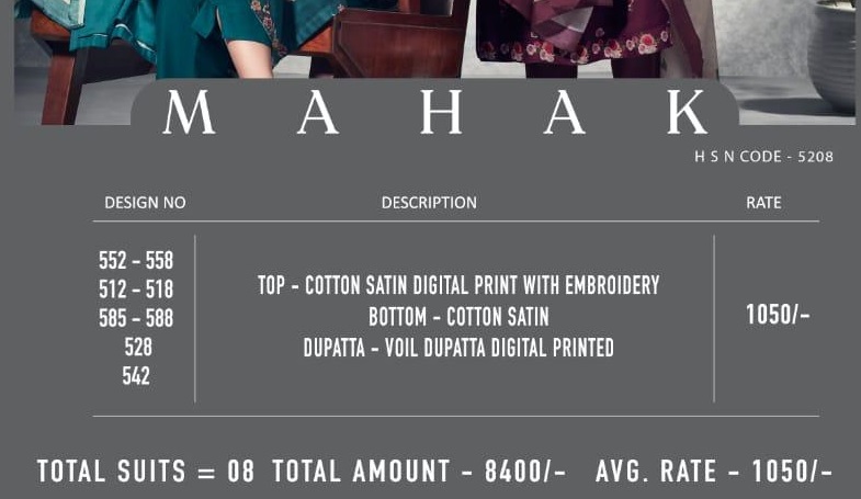SUDRITI MAHAK COTTON SATIN DIGITAL PRINT WITH EMBROIDERY WORK DRESS MATERIALS IN SURAT TEXTILE MARKET