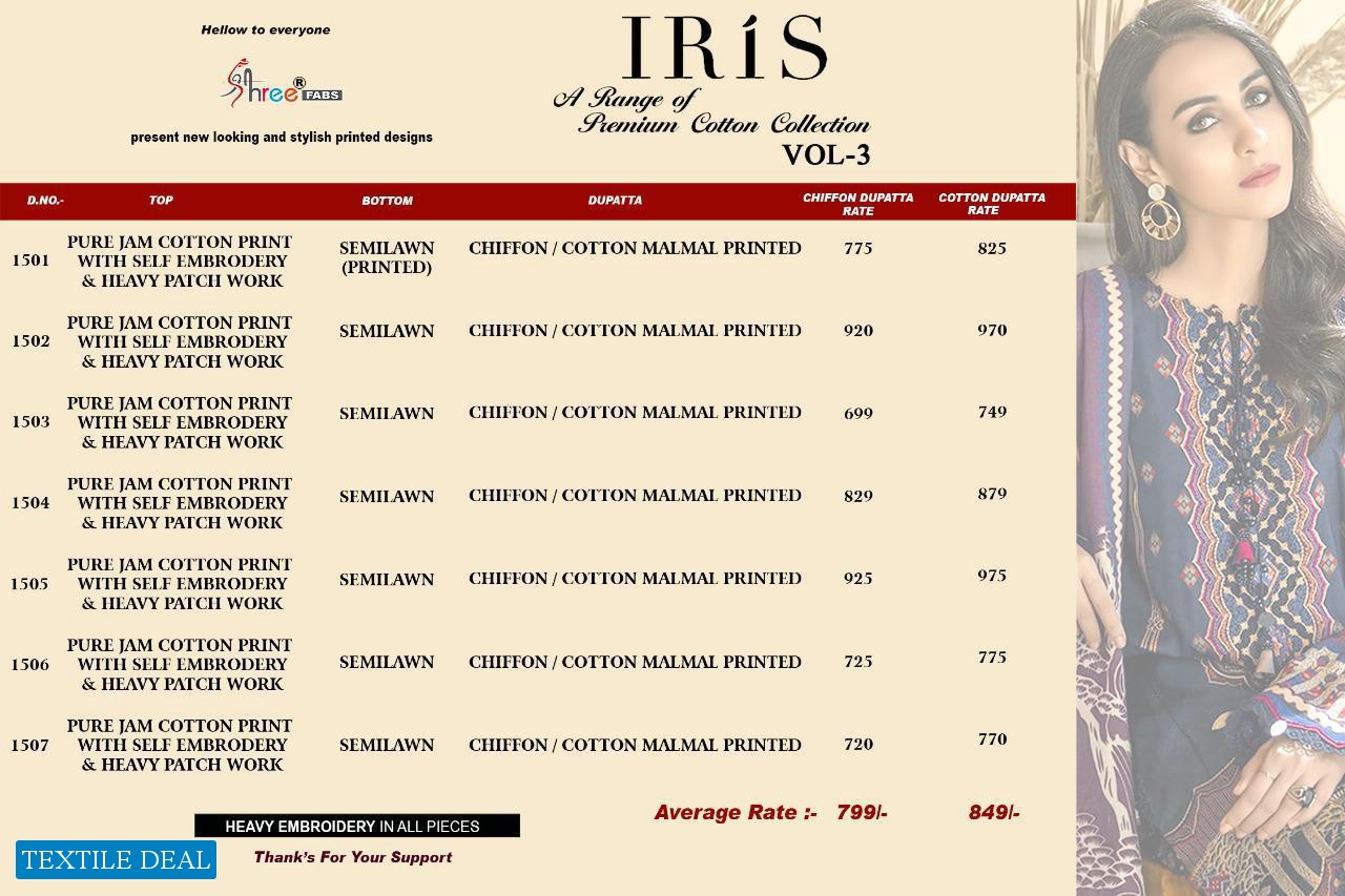 IRIS VOL 3 BY SHREE FAB JAM COTTON PRINT PAKISTANI SALWAR KAMEEZ CONCEPT IN SURAT MARKET