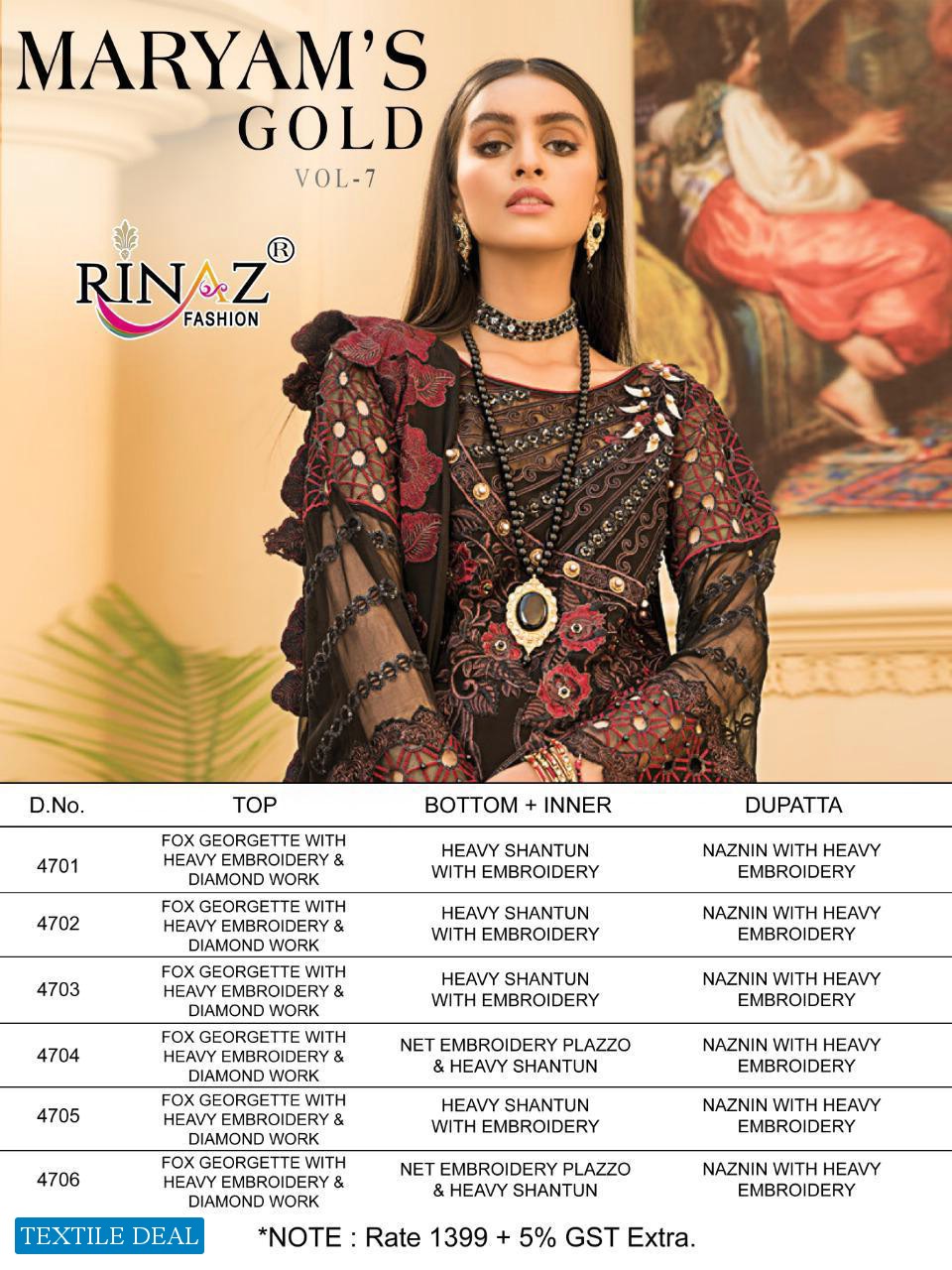 RInaz Maryams Gold Vol-7 Wholesale Pakistani Concept Dress