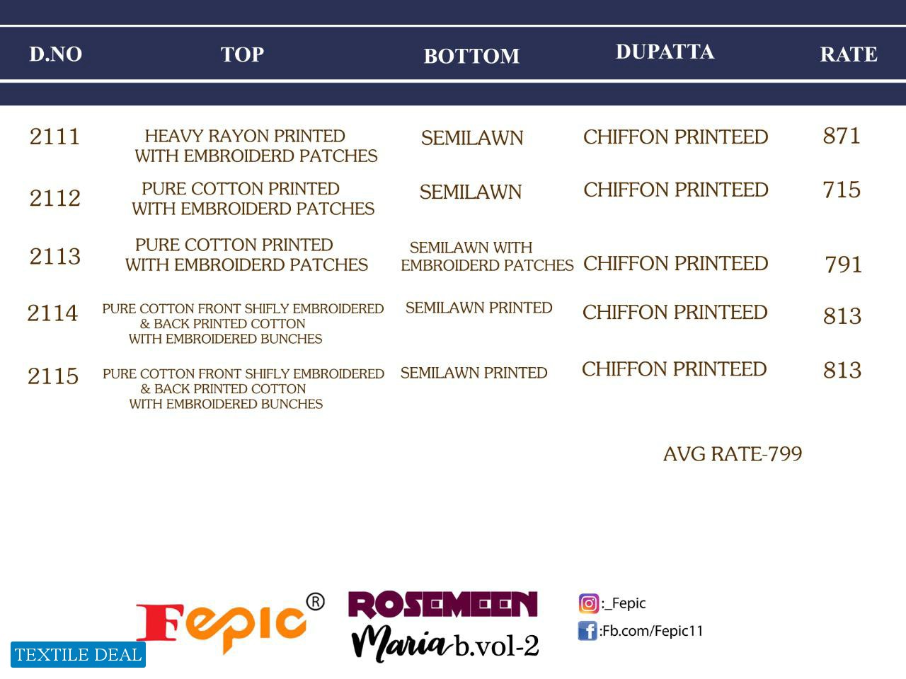 FEPIC ROSEMEEN MARIA B VOL 2 PAKISTANI COTTON LADIES SUITS WHOLESALER