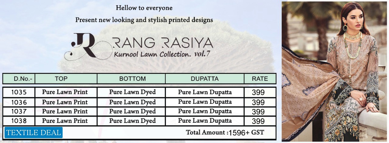 Rang Rasiya Kurnool Lawn Collection Vol-7 Wholesale Lawn Dress Material
