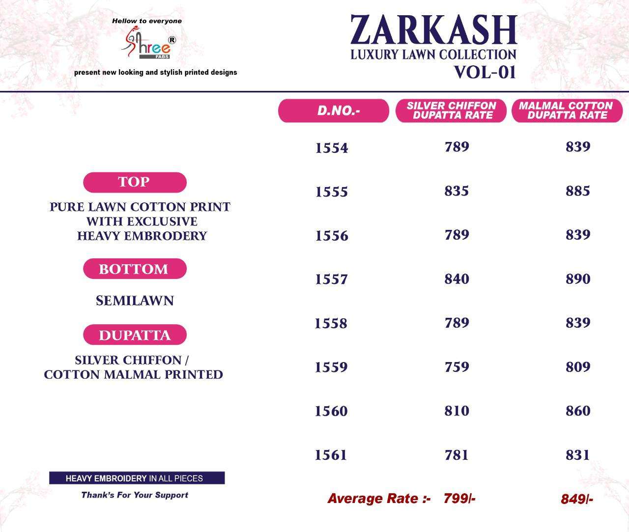 SHREE FABS ZARKASH LUXURY LAWN COTTON PAKISTANI SUMMER DRESS MATERIALS