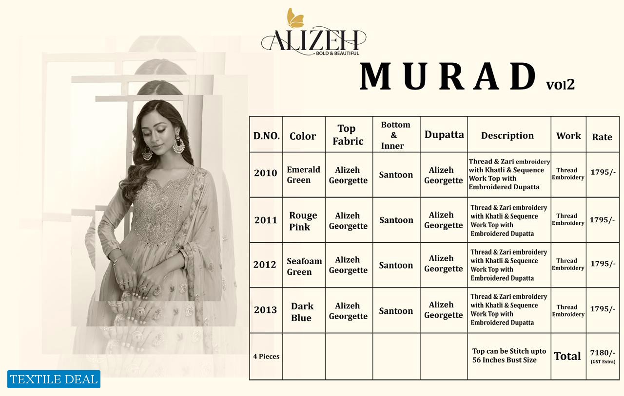 MURAD VOL 2 BY ALIZEH GEORGETTE EMBROIDERY PARTY WEAR SUITS