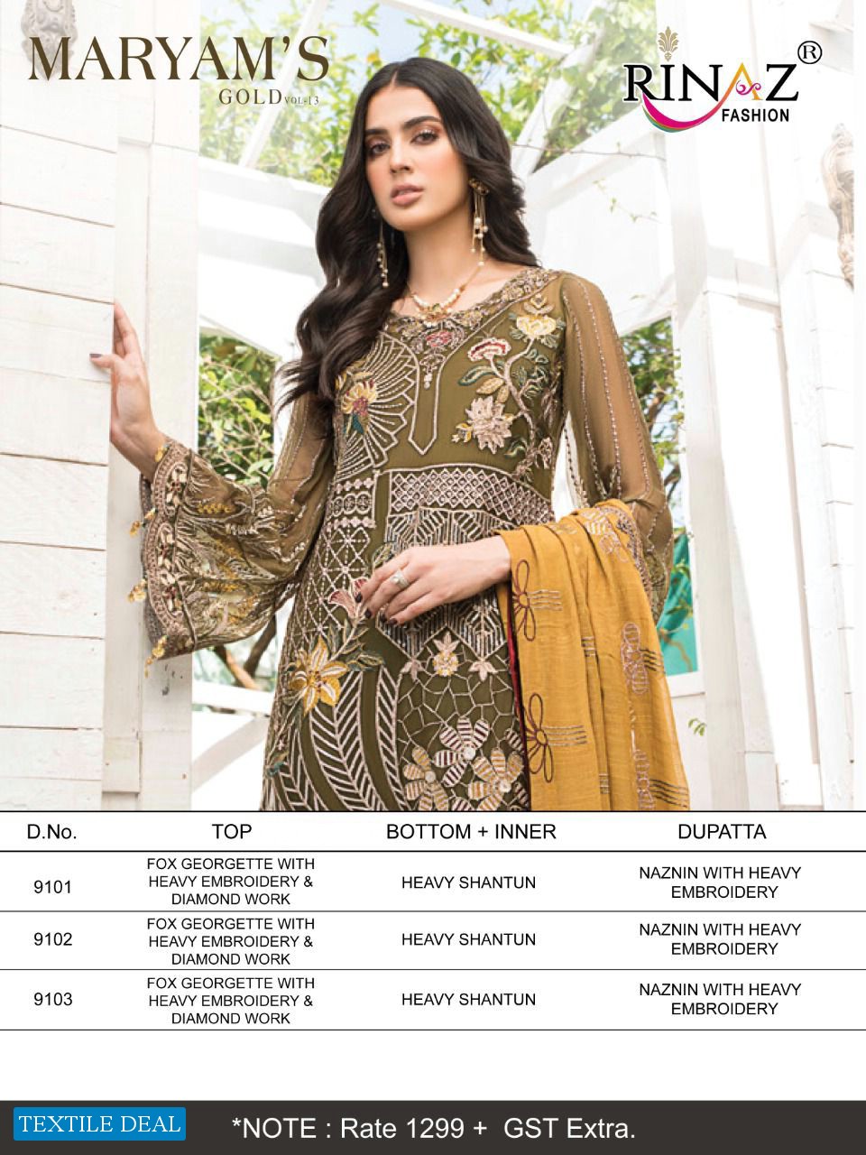 RINAZ MARYAMS GOLD VOL 13 EXCLUSIVE EMBROIDERY PAKISTANI SUITS