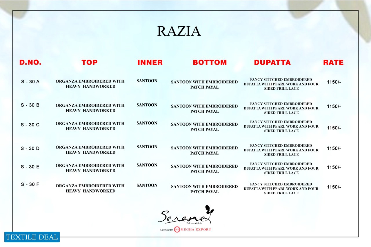 SERENE MEGHA EXPORTS RAZIA ORGANZA EMBROIDERY DESIGNER SALWAR KAMEEZ