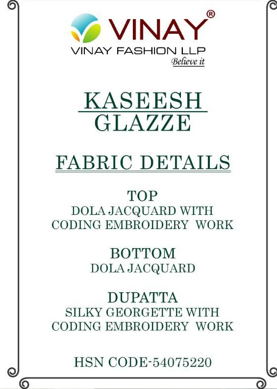 Vinay Kasheesh Glazze Wholesale Festive Indian Salwar Suits