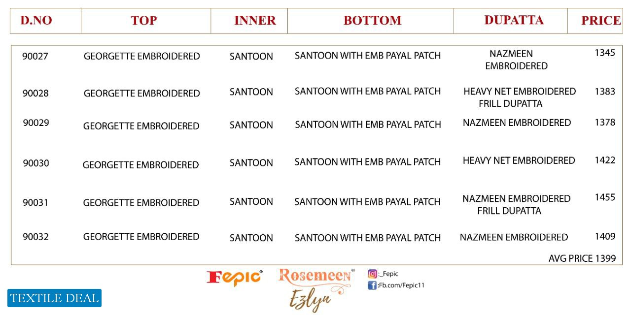 FEPIC PRESENT ROSEMEEN EZLYN GEORGETTE EMBROIDERY PAKISTANI SALWAR KAMEEZ