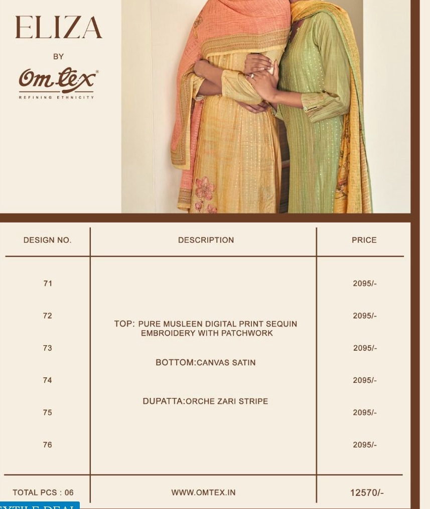 Omtex Eliza Wholesale Pure Musline With Work And Patchwork Salwar Suits