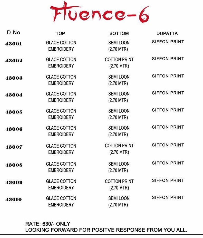 Fluence Vol-6 Wholesale Pakistani Concept Dress Material