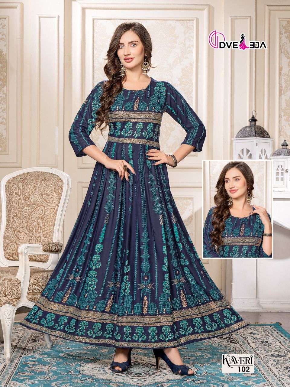 DVEEJA KAVERI HEAVY REYON FULL LONG GHERA KURTI CATALOG WHOLESALER BEST RATE