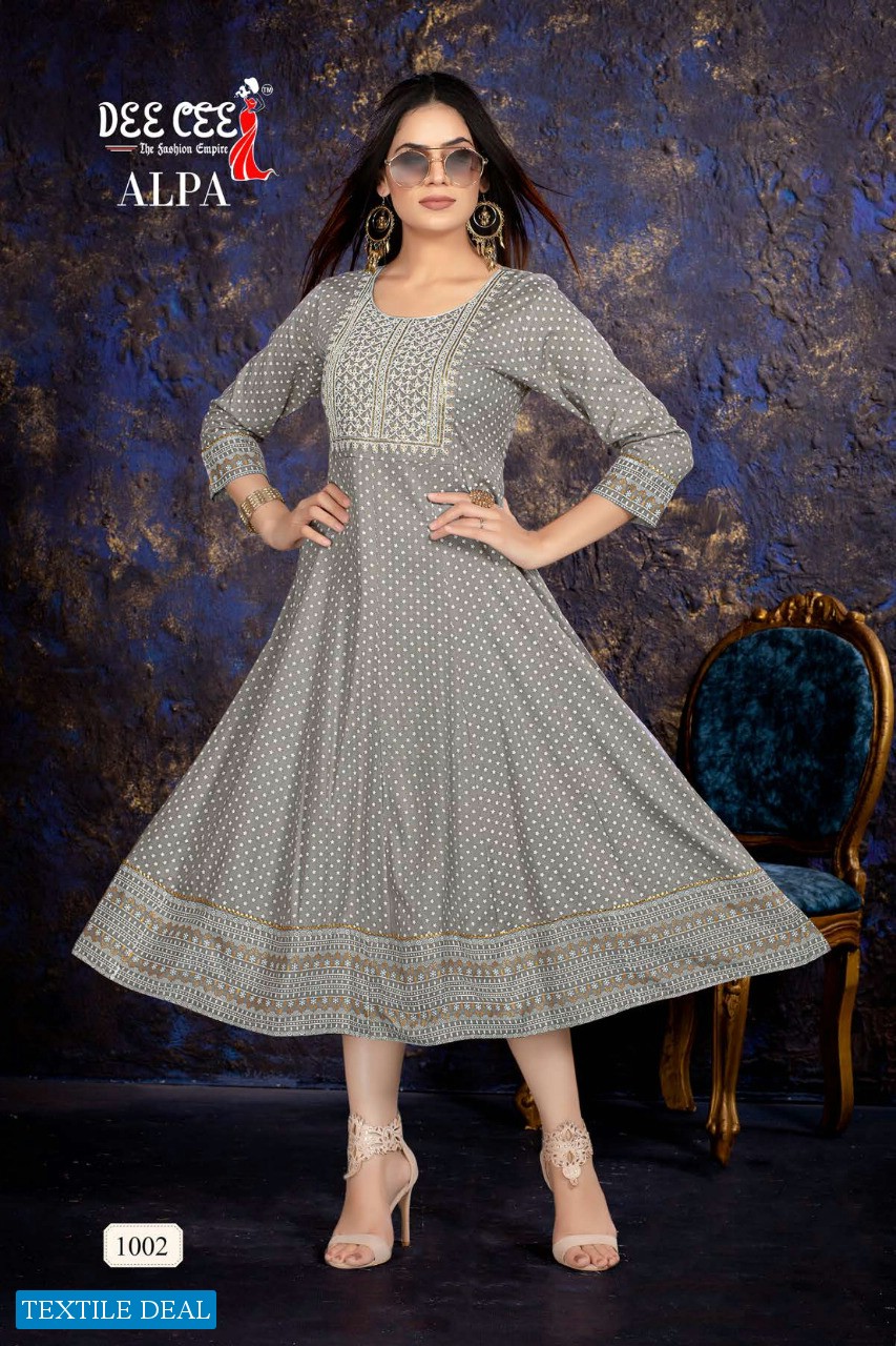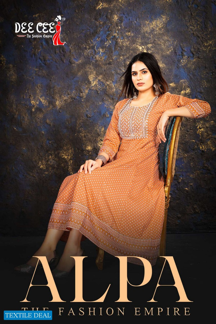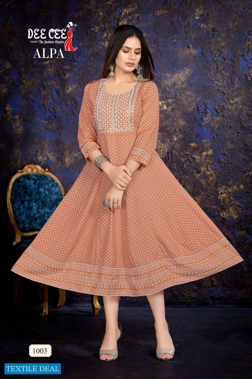 Dee Cee Alpa Wholesale Rayon Print Embroidery Work Short Flare Kurtis