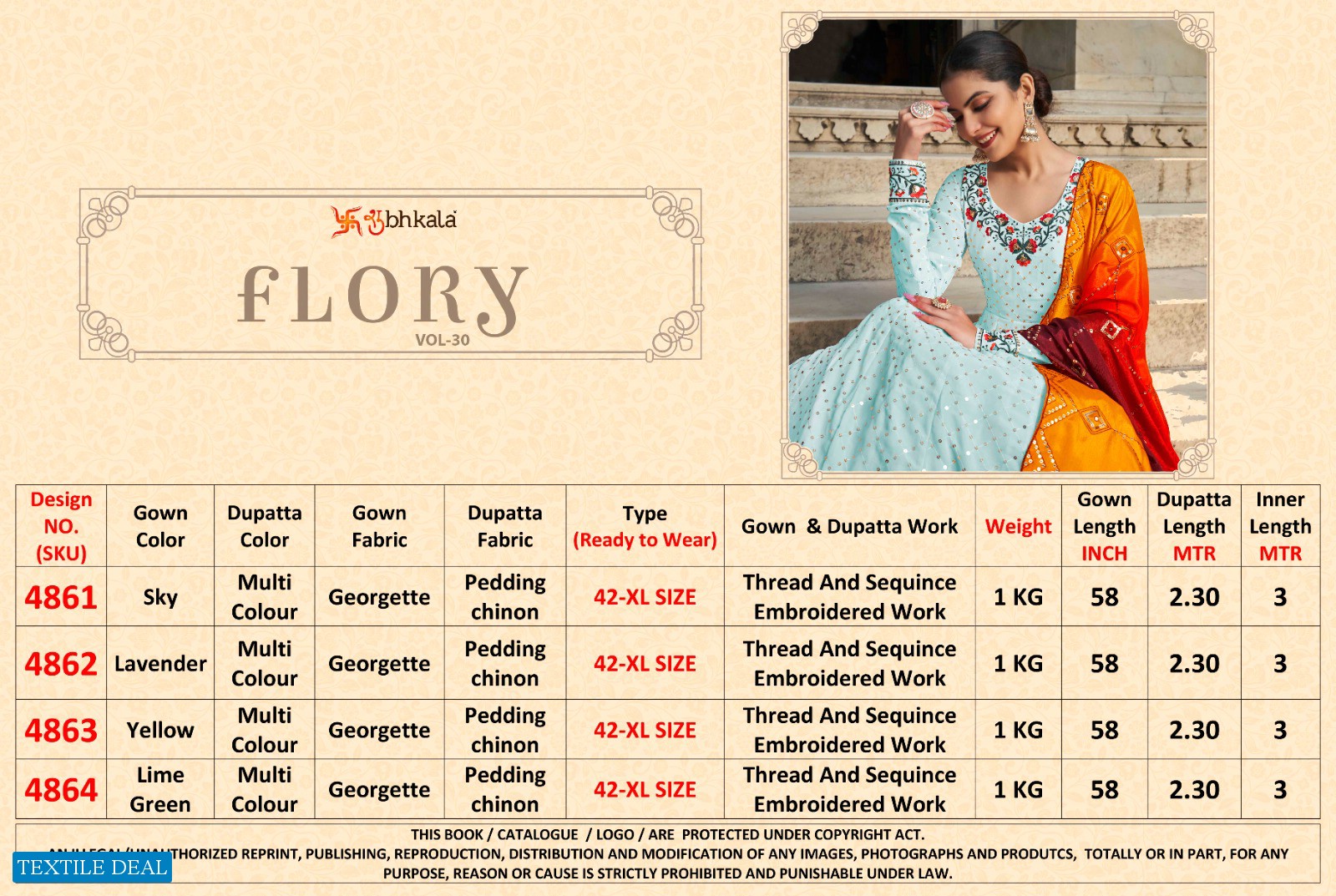 SHUBHKALA FLORY VOL 30 WHOLESALE DESIGNER EXCLUSIVE EMBROIDERED LONG ANTALKALI SUIT
