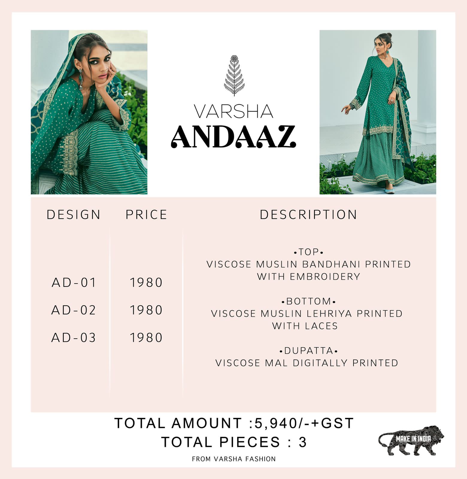 Varsha Andaaz Wholesale Viscose Muslin With Embroidery Salwar Suits
